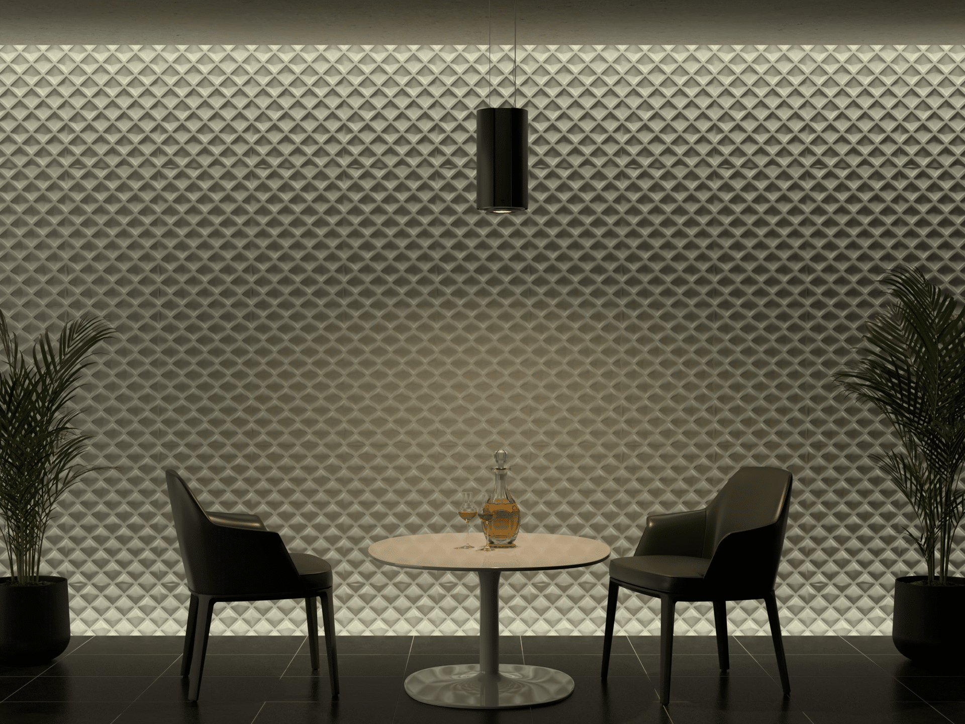 Su diseño se basa en patrones cuadrados con relieve bajo, Calcita, es ideal para cambiantes interiores y exteriores.