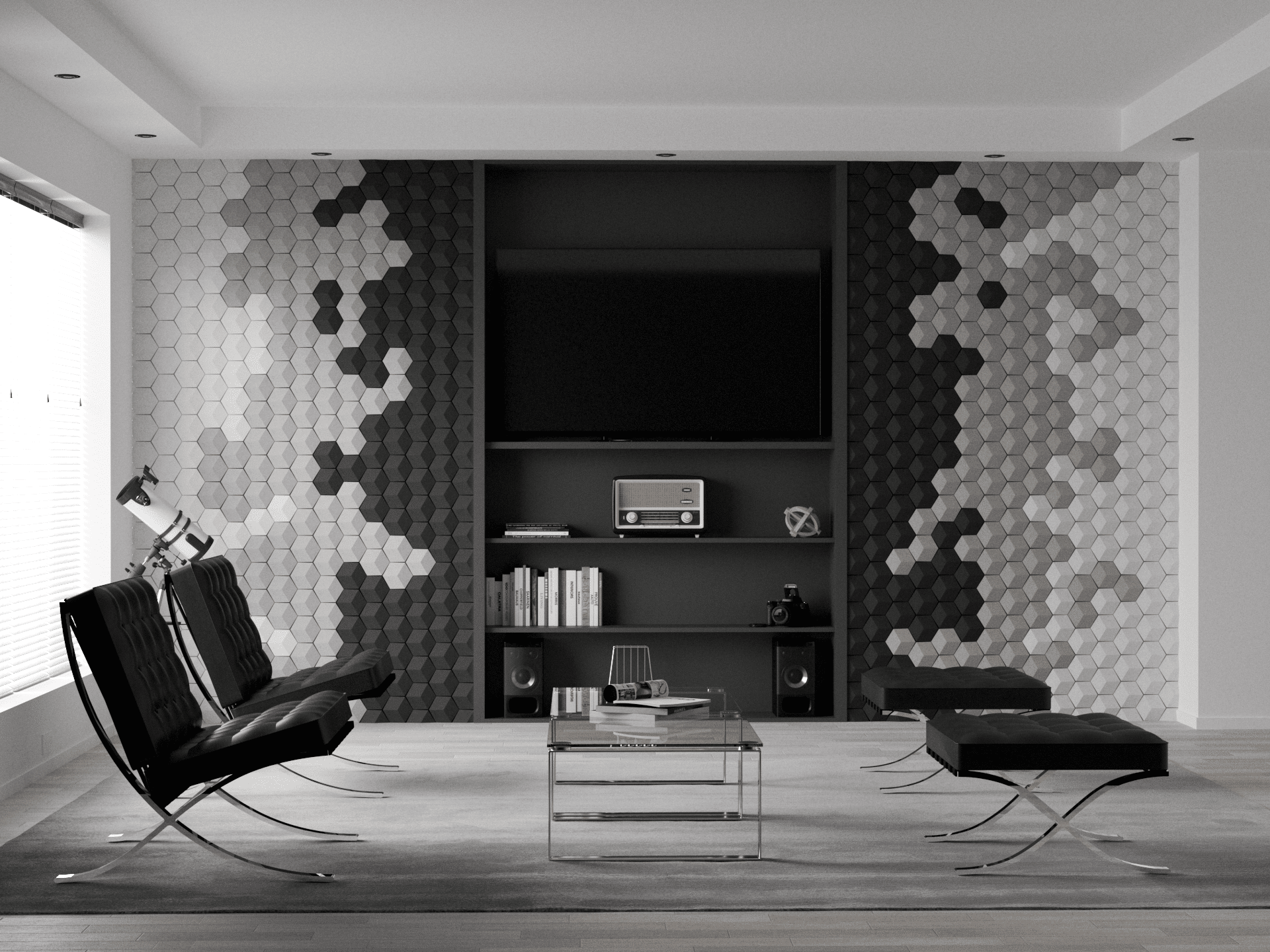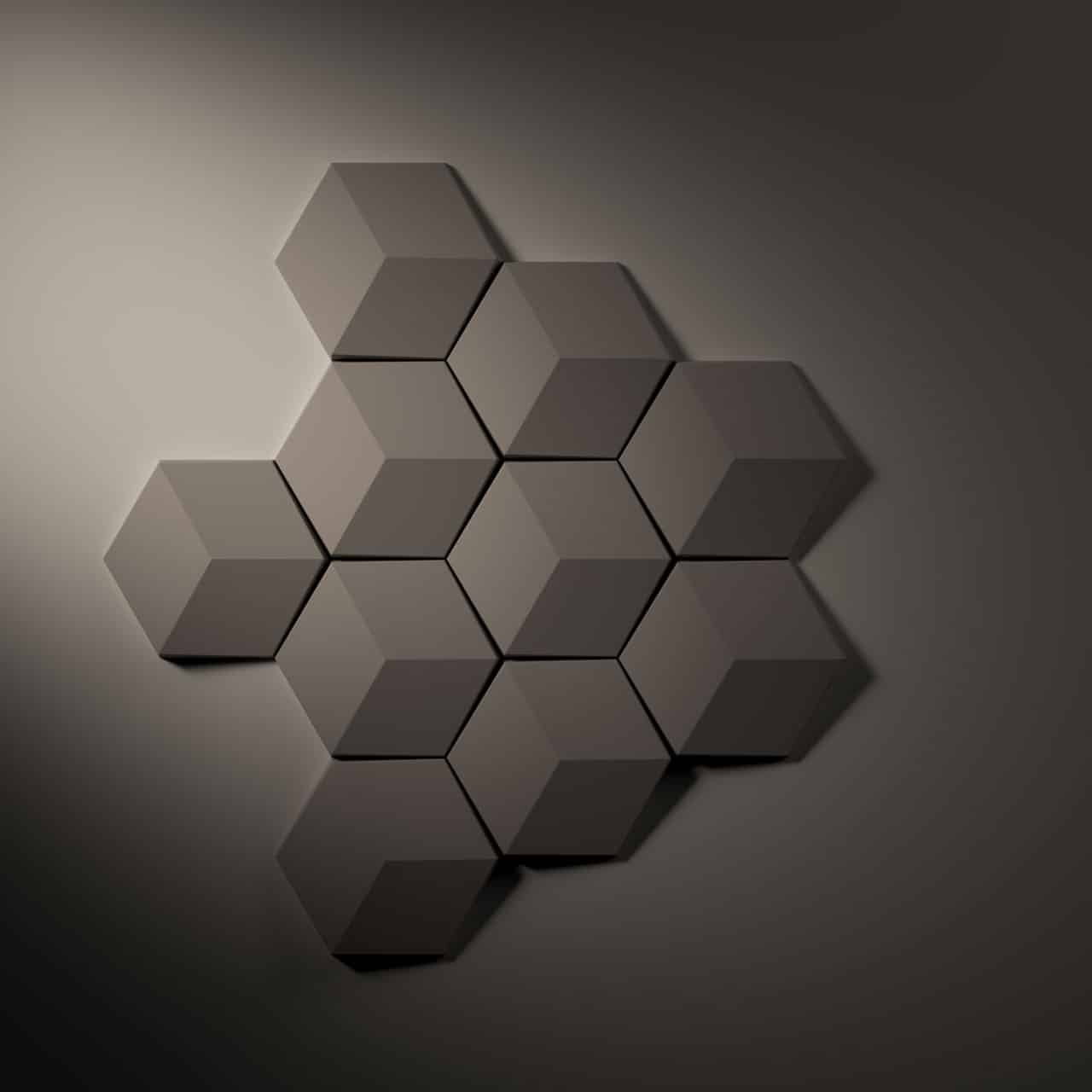 Una forma hexagonal, Píxel, juega con los relieves que asemejan a un cubo y permite diferentes acomodos en interiores y exteriores.