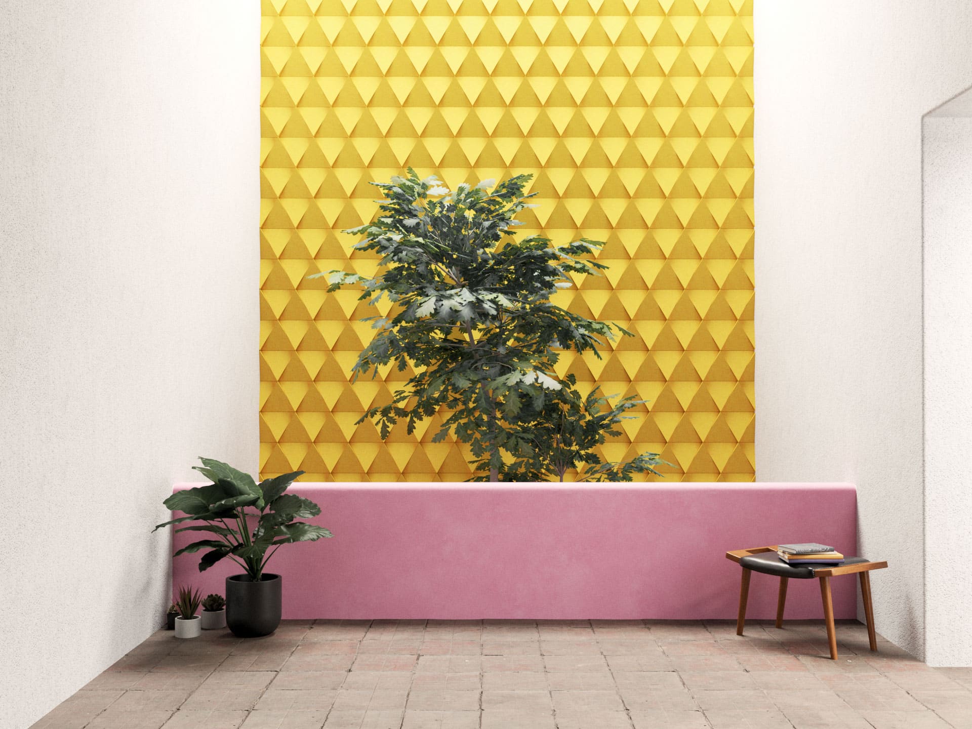 Una forma triangular que añade un desfase de altura, Uve, permite su instalación en interiores o exteriores, puedas jugar con diferentes acomodos